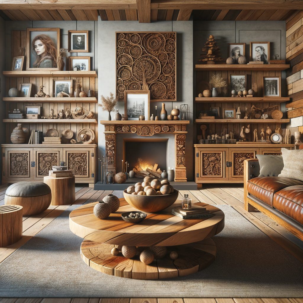 5. وسایل تزئینی و دکوری چوبی: استفاده از عناصر دکوری چوبی مانند قاب عکس، آینه، ساعت دیواری، جاشمعی، گلدان و مجسمه های چوبی، حس صمیمیت و آرامش را در فضا تقویت می کند. وسایل چوبی دست ساز مانند جعبه های چوبی، سینی و ظروف چوبی هم بر زیبایی و حس طبیعی فضا می افزایند.